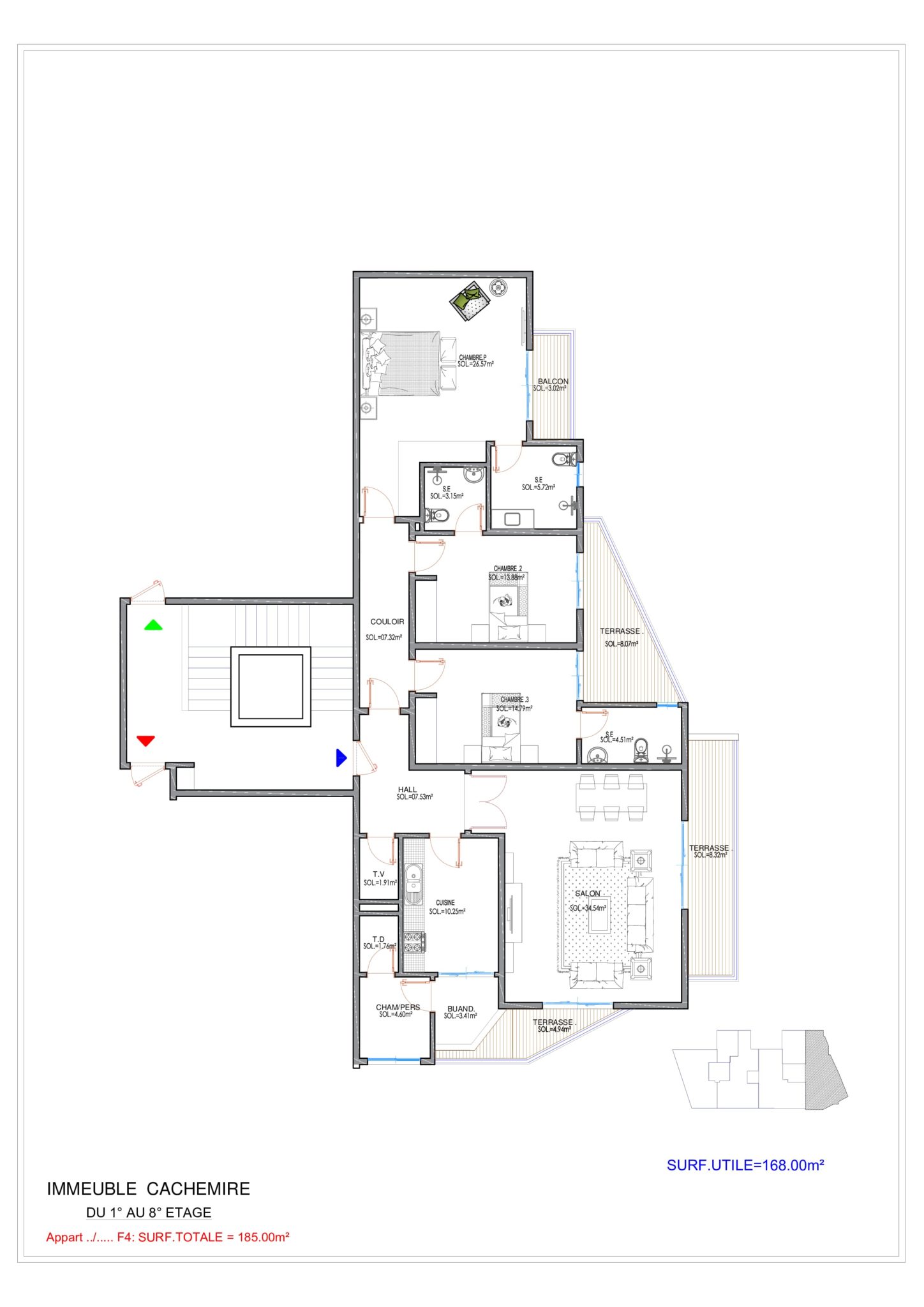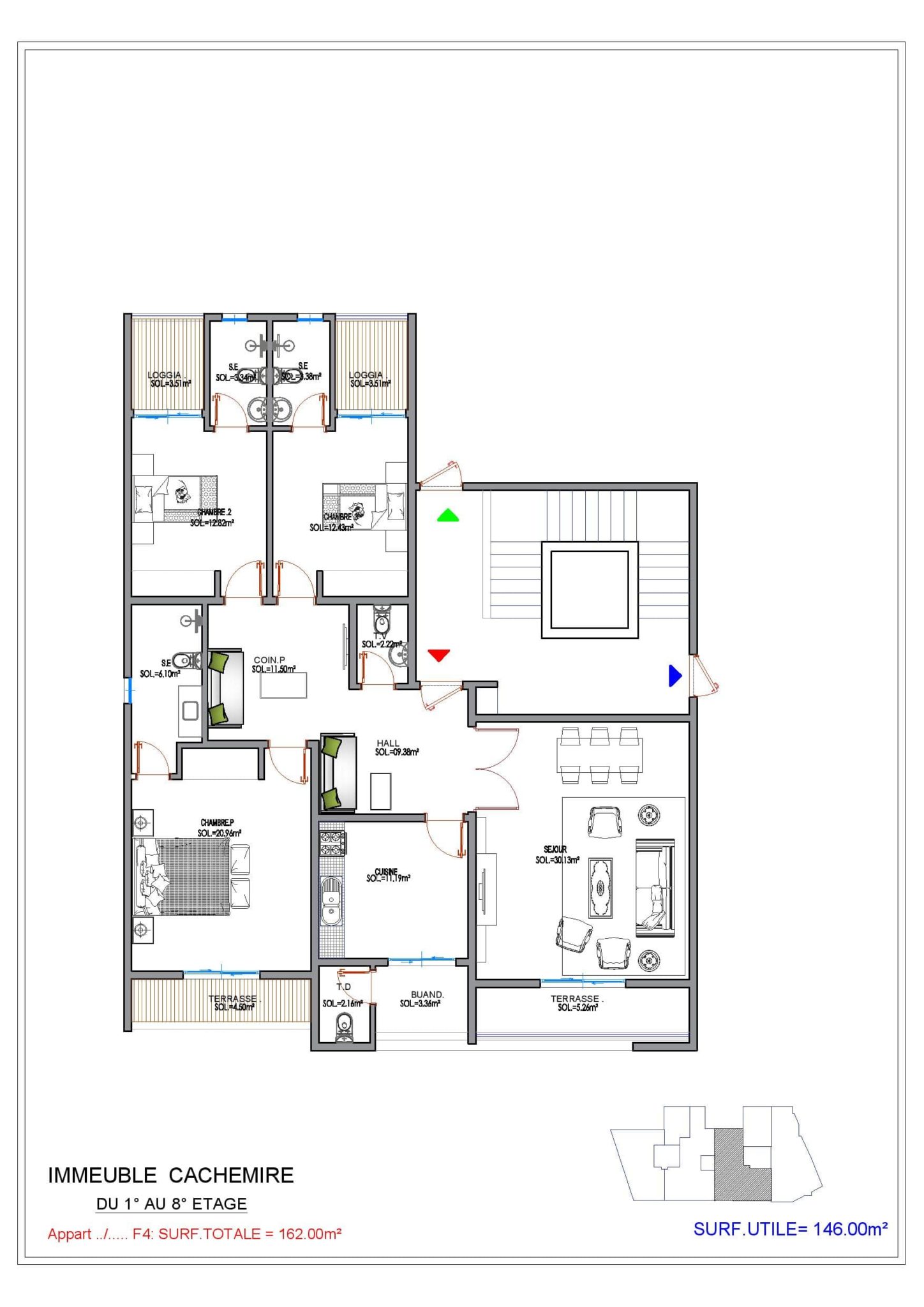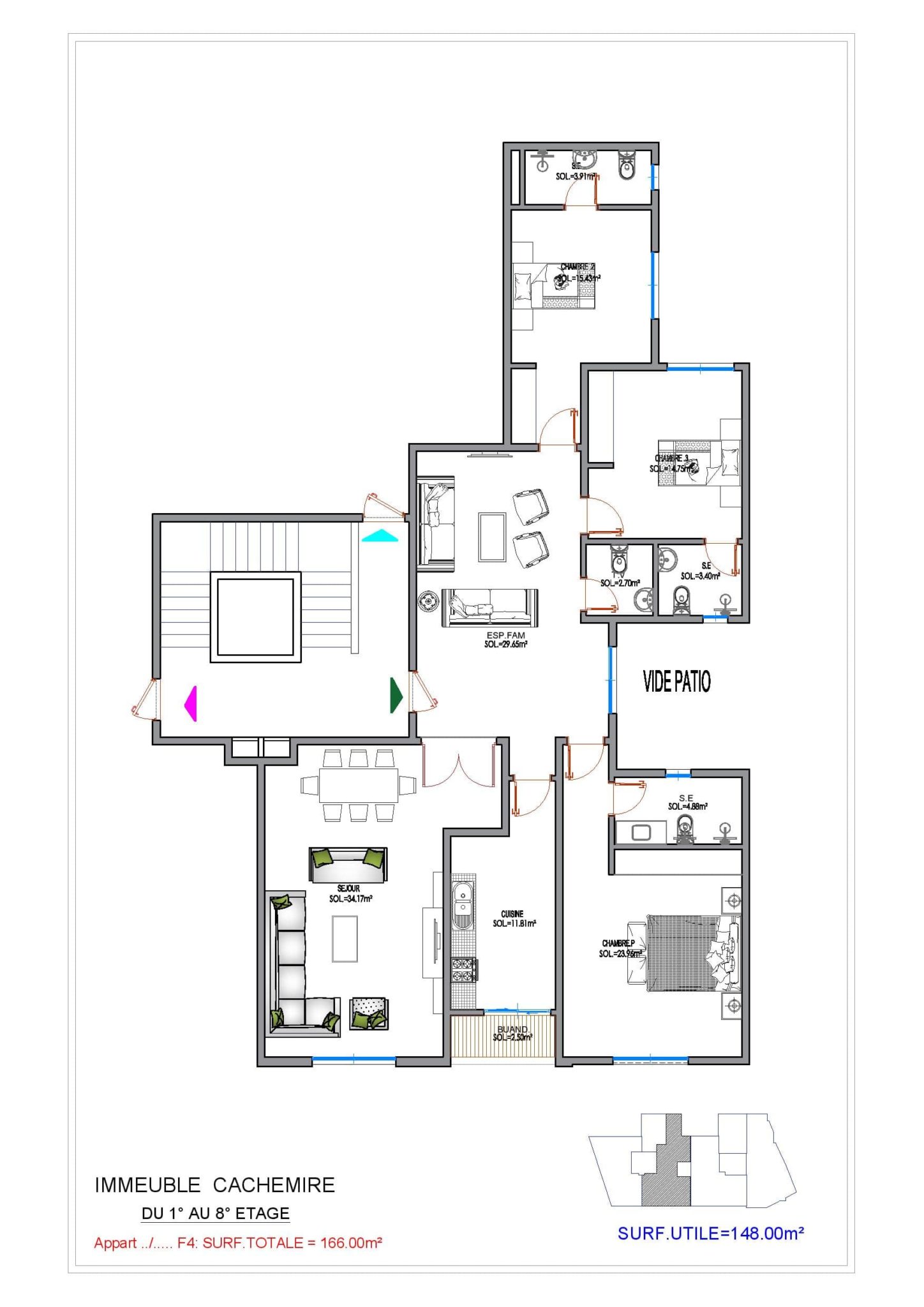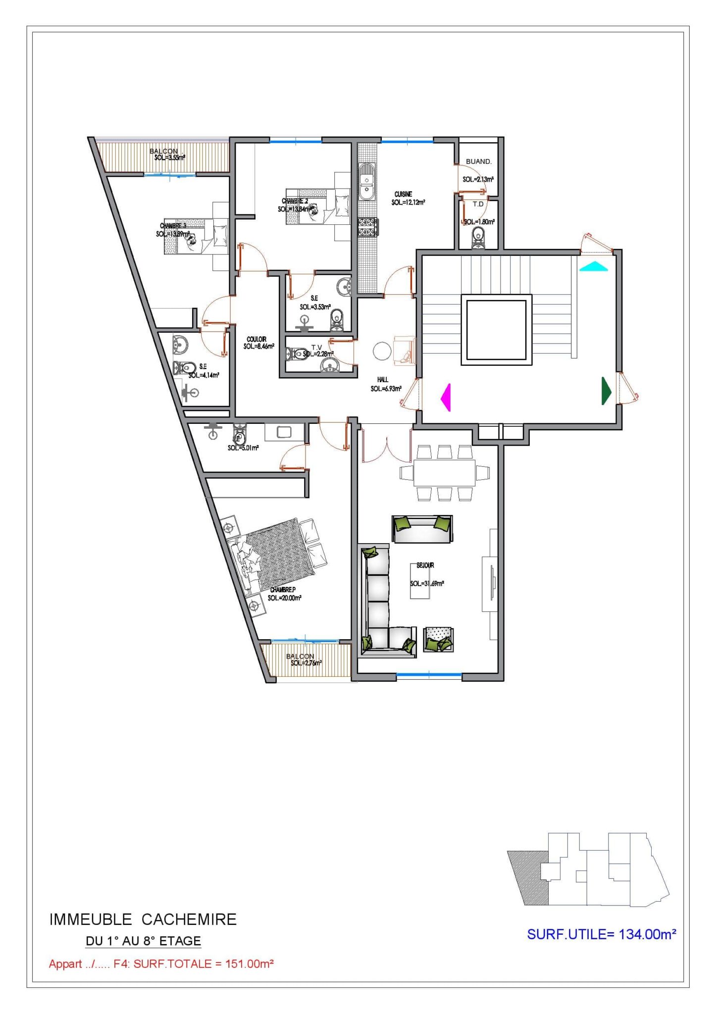 La résidence CACHEMIRE est un cadre de vie de standing, situé au Point E. C’est une résidence R+8, avec une architecture contemporaine et distinguée, comprenant 48 appartements déclinés en F2 et F4. Avec sa façade distinctive et des pans en couleur boisée, CACHEMIRE offre de nombreuses commodités pour le plus grand bonheur des résidents. Investissez dans un logement convivial et de bien-être à CACHEMIRE ! Dans cette résidence, vous trouverez une pléthore de commodités telles qu’un parking en souterrain, une salle de sport, une salle polyfonctionnelle, une salle d’attente, une piscine entre autres, ainsi que de nombreux services de proximité.