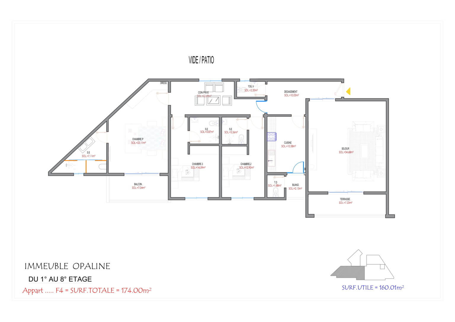 Discover our OPALINE Residence located in the heart of the chic Almadies district. This unique project benefits from an ideal location near Léopold Sédar Senghor airport and a stone’s throw from the beaches of Ngor and Pointe des Almadies. OPALINE is a new art of living favoring accessibility to the most beautiful beaches of Dakar and the guarantee of comfort and functionality in each living space. The site benefits from an immediate quality environment between the best restaurants in the city, supermarkets and shopping centers, the headquarters of multinational companies and the largest international organizations. For daily life, nurseries and schools, banks and shops are very close to our program of choice on one of the most beautiful coasts of West Africa. OPALINE consists of a basement and 9 floor levels including exceptional apartments of types F2 and F4 offering serenity, aesthetics and security